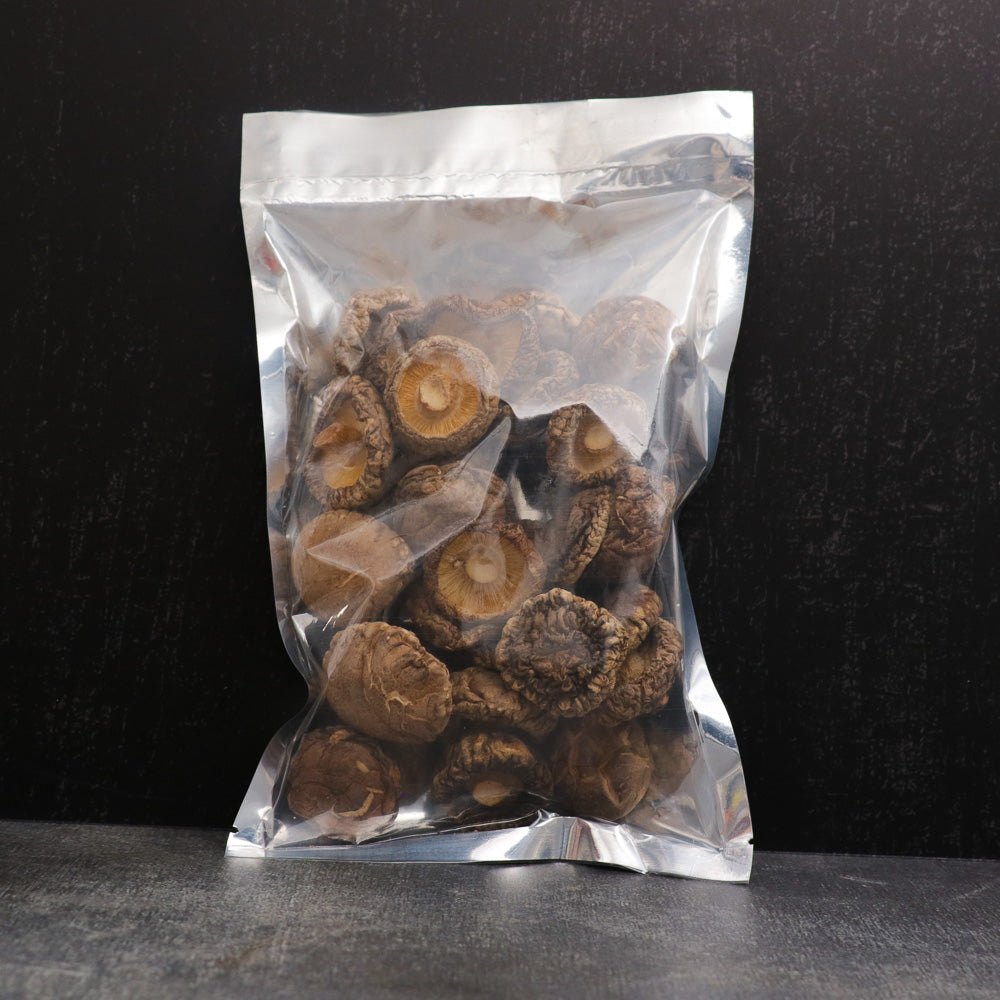 Flavourful shiitake mushrooms are such a foundation of Asian cooking. They have an intense flavour used in soups, braises, and steamed dishes. Made from smoked fresh shiitake mushrooms, they have an intense smoky flavour and a meaty texture. They have a very concentrated flavour and most of the time cannot be replaced by fresh shiitake mushrooms. Dried shiitake mushrooms can easily add deep savoury flavour, umami.
