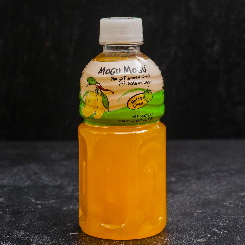 From the Japanese term meaning "to chew," Mogu Mogu is a refreshing, widely popular drink around the world. First produced in Thailand, Mogu Mogu comes in many delicious flavors of real fruit juice containing cubes of chewy, jelly-like nata de coco made from flavourful bites of young coconut. Take a drink and get a mouthful to chew. It's a drink and a snack all in one!