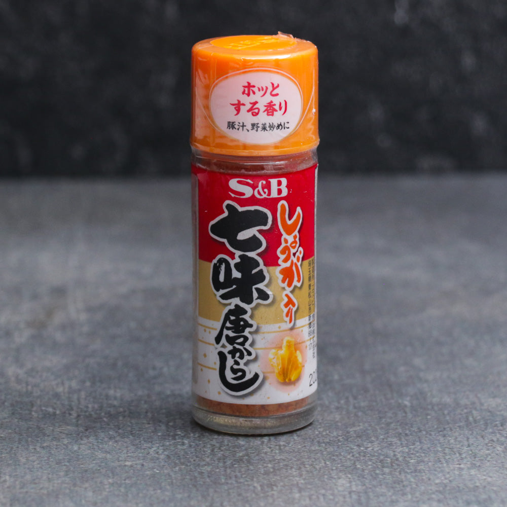 S&B Shichimi Mustard With Ginger Powder a refreshing spice with the aroma and spiciness of ginger. In order to balance the aroma and spiciness of ginger, black sesame is changed to white sesame compared to the usual Shichimi. Green laver or seaweed is blended to create a product that captures the aroma and spiciness of this powder.